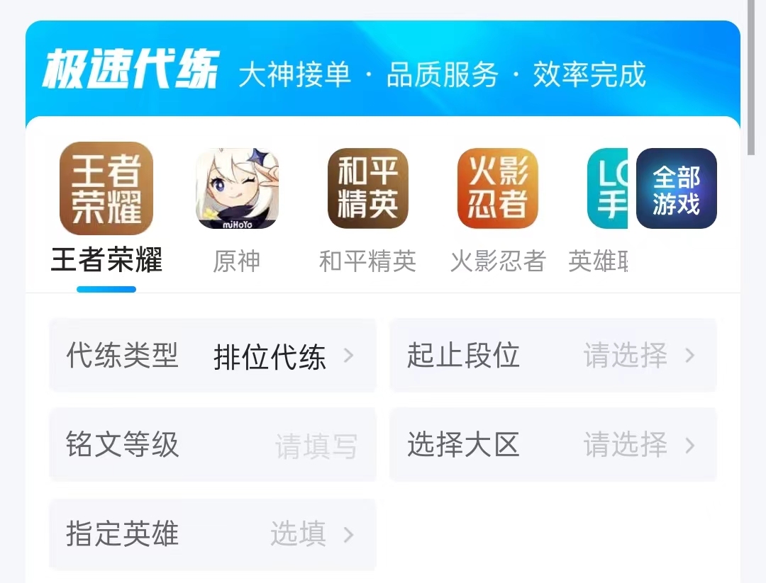 当然在交易猫中不仅可以买卖账号平台,还提供了代理服务。许多的玩家在游玩一些角色扮演武侠类的游戏都是需要进行刷图的,另外一些有着段位设定的游戏,大家也希望能够请代练来帮我们来获得丰厚的奖励。交易猫的代练都是有官方认证的,价格也比较实惠。