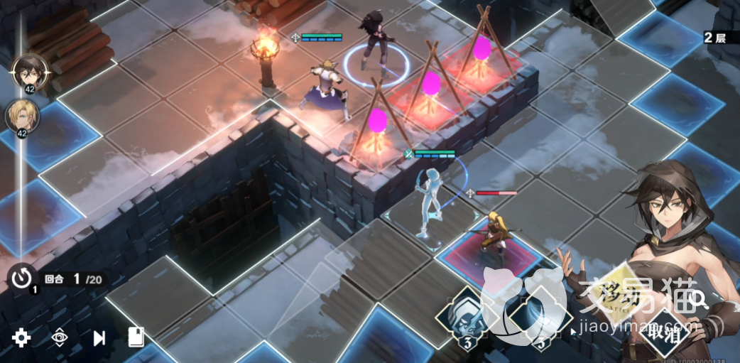 然后再让这个角色回到下面的平台那里,再等待对方移动。等到了自己回合的时候,可以让女角色回到刚开始站的区域,然后直接结束这个回合让对方行动。在下一回合中就可以操控女角色移动到对方的身后,并发动攻击将其打下去。