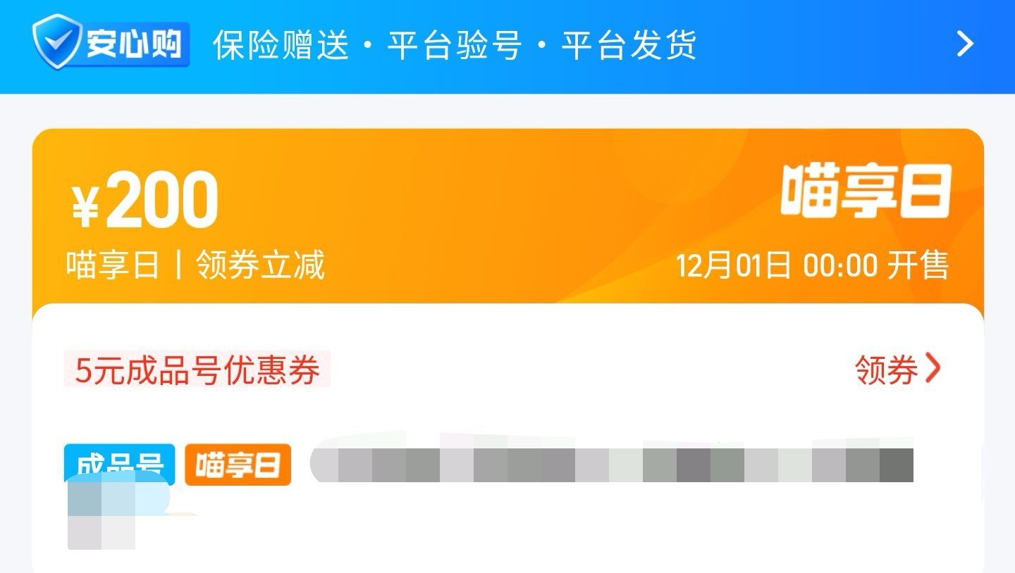 在交易猫这个平台当中会不定时的出现一些优惠活动,就比如在喵享日是可以使用优惠券去购买游戏账号,相比没有优惠时去购买账号可以节省不少的钱,因为毕竟有一些游戏爱好者他们还在上学的阶段没有太多的钱来购买游戏账号,但是小编也希望大家能够合理的安排玩游戏的时间,切勿本末倒置。