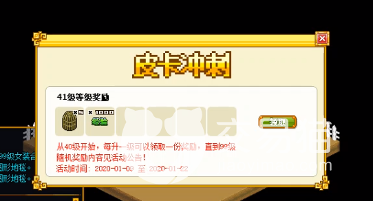 皮卡堂这款游戏每隔一段时间会给玩家们带来一次冲级奖励。主要的目的就是在于推动玩家对于等级的执念。等级越高玩家能够获得的奖励也就越高,但是不知道玩家有没有看过关于皮卡堂之前的文章,就是皮卡堂到达三四十级之后,等级就会非常的难提升,因为玩家获得经济的方法有不少但是普遍来说获取的经验不多。