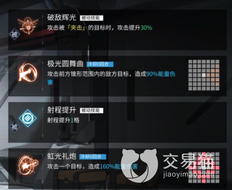 技能面板方面,欧若拉是一位火力定位的角色,火力位是游戏里最高输出的位置,这个位置上的角色输出都很高,欧若拉就是这样一位高输出角色,她属于打boss站撸,打小怪丢技能乱杀的那种角色,他的面板成长很高,在精了开启专属模组之后,会拥有一个非常恐怖的暴击和爆伤。