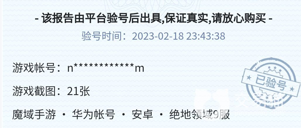 账号保证真实。我们在购买账号的时候,一般会比较担心账号的真实性,怕卖家给我们发过来的是空账号或者是假号。交易猫会给我们提供专业的验号服务,有的卖家在发售商品的时候就已经提供了验货报告,如果没有提供报告的商品,我们在拍下之后也会进行这个步骤,当我们拿到报告以后,再确定是否在进行购买,这个报告是有专一的编码的,并且上面明确写明了查验的时间,还有游戏里面的截图等等。