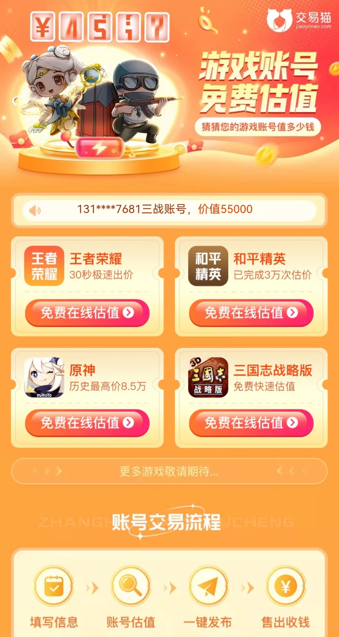 在出售账号之前,首先要搞清楚里面具体有价值道具包括哪些,除了英雄数量之外,各种各样皮肤就是价值最高的地方。尤其是一些获取难度比较高的类型,更是重要价值组成部分,如果账号中存在一些绝版皮肤将会非常抢手。为了能够更方便卖出去,小编推荐大家去交易猫游戏账号交易平台操作,这里不仅人气高出售速度快,而且还能直接进行估价,非常方便。