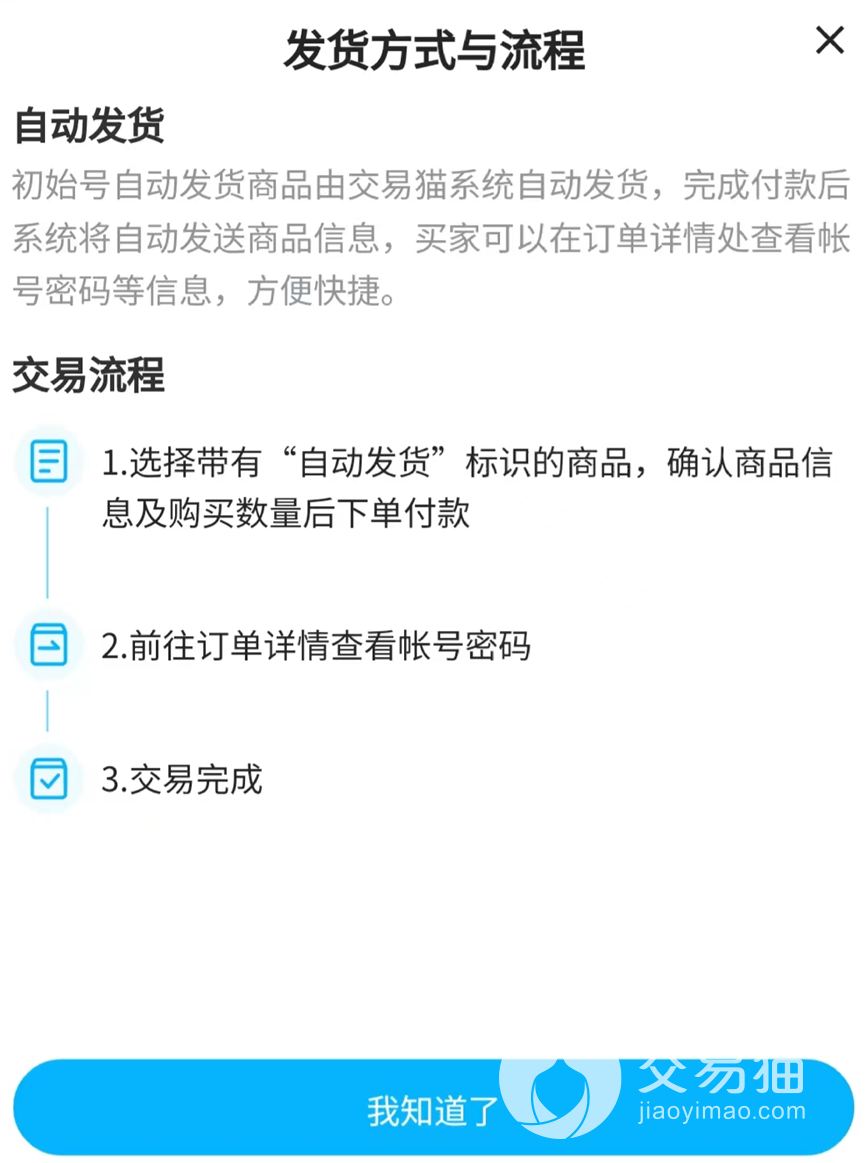 大家可以在自抽号交易专区内挑选出售账号的商家后,初始账号商品如果含有自动发货的表示都是由交易猫系统来进行发货的,大家确定购买下单之后就可以直接在订单详情页内看到所购买商品的账号和密码。