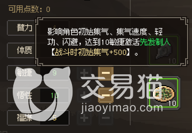 而臂力和福源这两个这是影响着暴击,每点比例能够增加1点暴击,而福源则是增加0.5暴击。而敏捷着是影响玩家释放大招的速度,每一点敏捷可以较快0.25集气速度,最后就是悟性了,他能增加玩家的防御力和攻击力的,每点属性增加0.8防御和1点攻击。