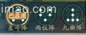 ③九曲阵:这是一个倒T字形的阵容,前排也只有一个,不过和星斗阵一样对于后方保护的很好,而且如果你的阵容只有一个核心输出,并且本身还是脆皮,那么也非常适用这一套,因为可以让它蹲在最后面的中间位置,这样能极力延缓吃伤害的顺序。