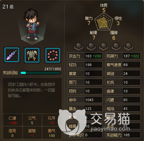 其实剑修在游戏中是一个比较好的职业,在招式上面能够学习的技能是挺多的,大家一开始想要走剑修路线的时候就要在游戏中选择圣贤传人这个天赋,这个天赋跟剑修比较适配,后面再把游戏的难度调整到最难的状态,因为这个时候玩家的敏捷才是112点。