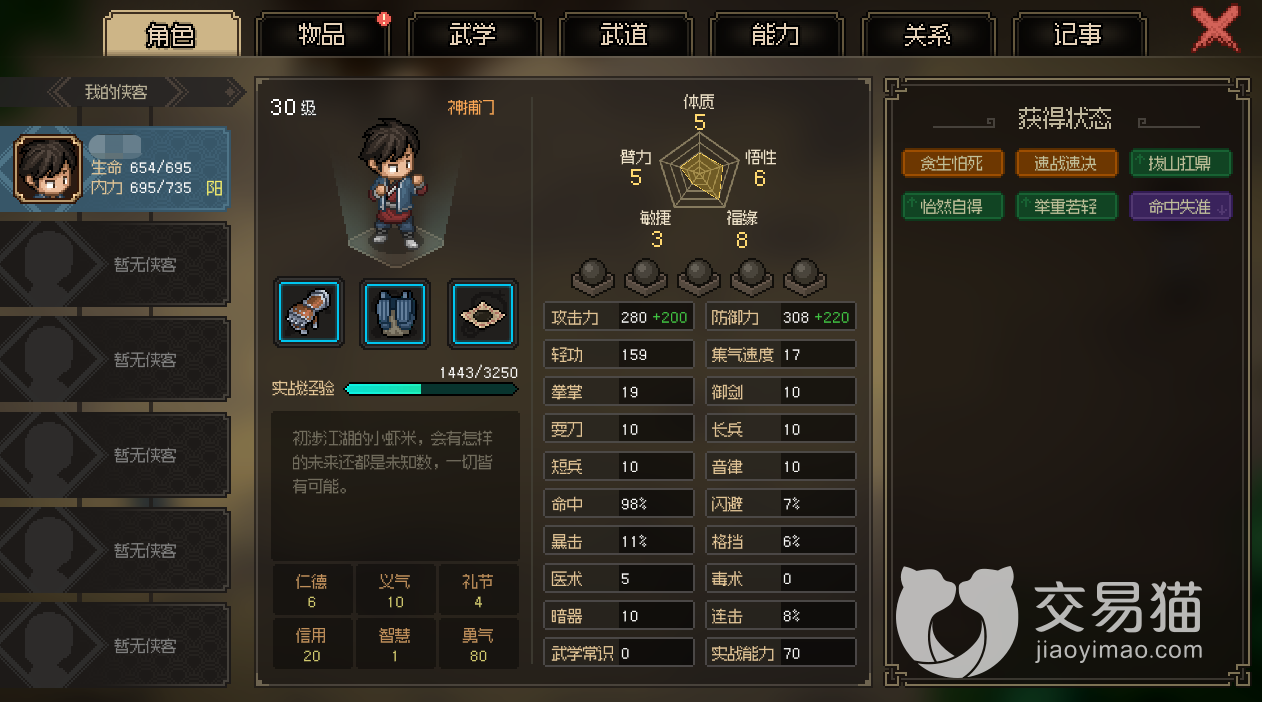 大侠立志传先天属性如何提升 先天属性提升方式一览