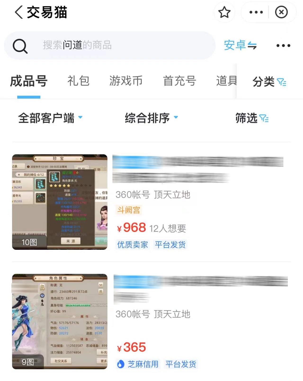 问道手游最好玩的地方在于骑着一头极品坐骑到处砍人砍怪,所以玩的人很多,退坑和新入坑的玩家很多。于是就出现很多相关账号交易的需求,在交易猫则能轻松解决这种缺口,因为里面的日活人数多,还能提供各式各样的优质服务,供大家顺利交易。
