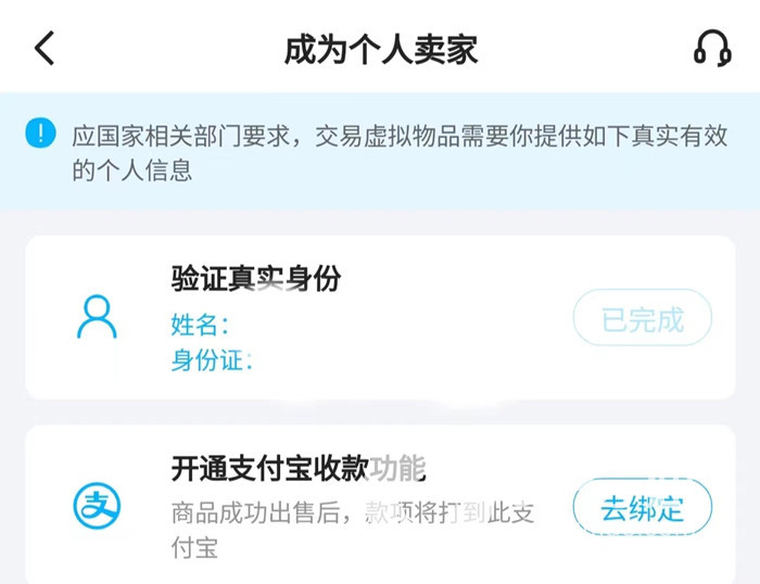 如果不是以练号、卖号为业的玩家,那么只需要在交易猫平台申请一个“个人卖家”身份就足够使用。需要注意的是在成为个人卖家过程中需要验证真实身份以及开通支付宝收款功能,这样一来不但增加了卖家自身的信誉度,更是可以使交易所得的金钱直接转入自己的支付宝账号之中,这样也省去了提现等不少烦心的操作。