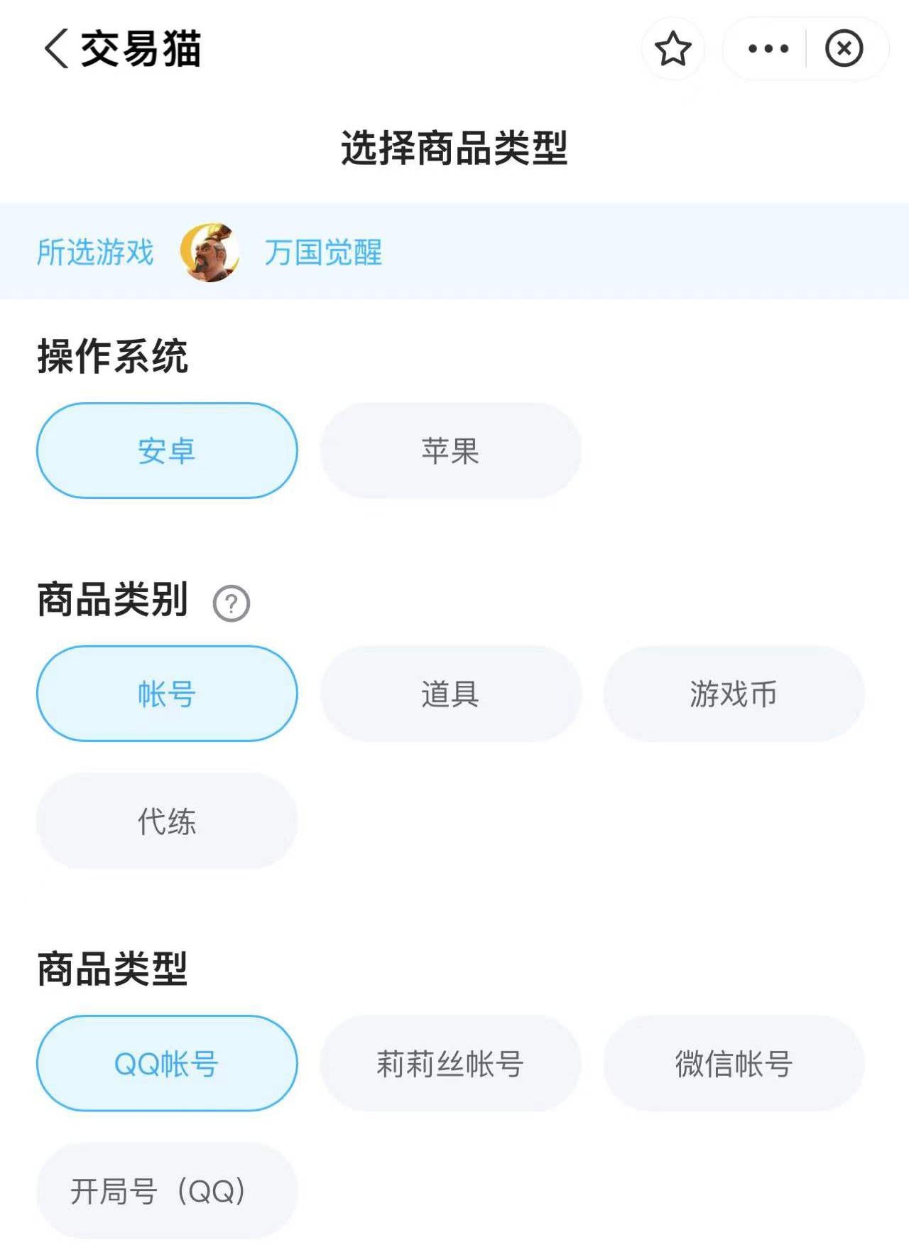 当你找到交易猫之后,接着在搜索框输入万国觉醒,就可以找到对应的卖号专区。相信很多朋友都认为卖号是一个繁琐复杂的事情,其实不然。在交易猫里你只需要简单地勾选对应的选项,然后再根据自己的账号具体信息,在详情页面里仔细地填写一下你有多少兵力、元帅,还有等级多高等等信息之后。便可以一键迅速将商品上架,之后便会展示在平台上,静静地等待别人购买。