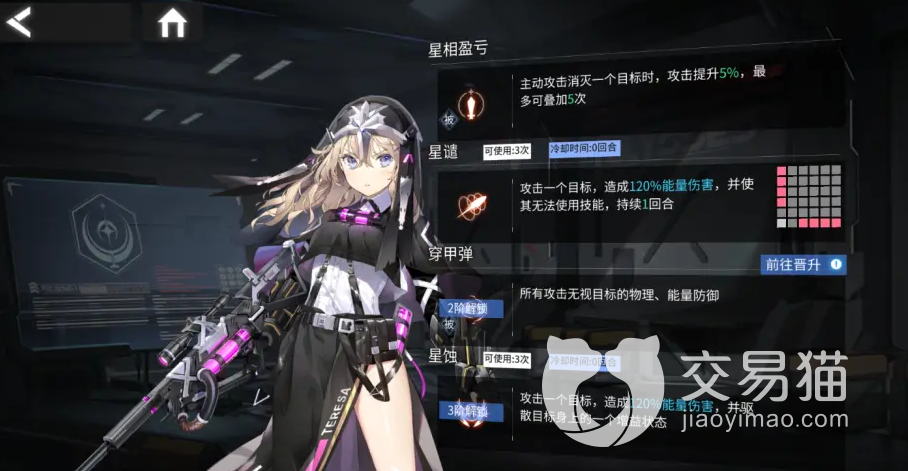 先和大家说一下图鉴的主要情况,游戏里共有特勤、战术、道具、武器、以及敌方这几个不同的图鉴,而这些就分别收集了游戏中所有对应选项的角色、道具、武器等等。首先是特勤图鉴,里面收集了全游戏的特勤也就是人物,在这个图鉴中会对每一个人物进行分类排序,一共分为了七种分别是突击、火力、狙击、哨兵、异能、护卫、医疗,这七个子分类里面则是收录了对应的特勤,在收录的时候还对星级进行了排序,高星级的在前,低星级的在后,像是天狼星、莲、米莉安这种高星级的突击特勤就排在新星、黑爪这种第一级的突击特勤前面。