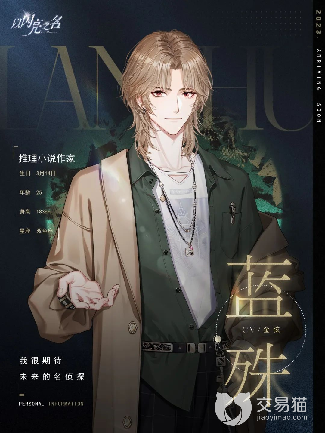 这位角色在初登场时就有一段非常特别的介绍,这段介绍的大致意思就是他的出现总会伴随疑云和谜团,他的作品会让人看不见真相,和他的相遇,是他用尽心血打造的最好的作品,这是游戏对这位角色一段描述,有一点谜语人的味道,不过游戏里的剧情是偏向悬疑类的所以这个描述还是比较符合剧情的。
