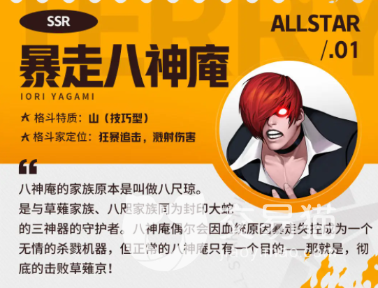 全明星激斗暴走八神庵怎么样 全明星激斗暴走八神庵介绍