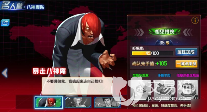 暴走八神庵在游戏里可以搭配薇丝和麦卓三人组成八神队的核心成员,三个角色在增加暴击输出的同时还能提高生存能力,有效提高暴走八神的上限,不再受限于只有输出而牺牲防御的说法。