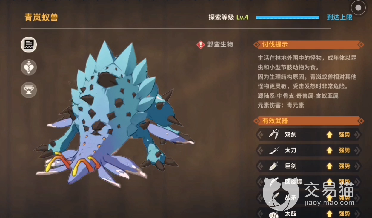 游戏内不同的地图所碰到的怪兽也是不一样的,比如沙漠地图里,会有风岩蚁兽或者沙居蟹等,其中火跟冰属性可以克制住风岩蚁兽,而沙居蟹不仅能被这两种属性克制住,还可以被毒属性克制住,不过这些怪物里有两种只能被冰属性克制,那就是宝山龙和铠山猿兽。