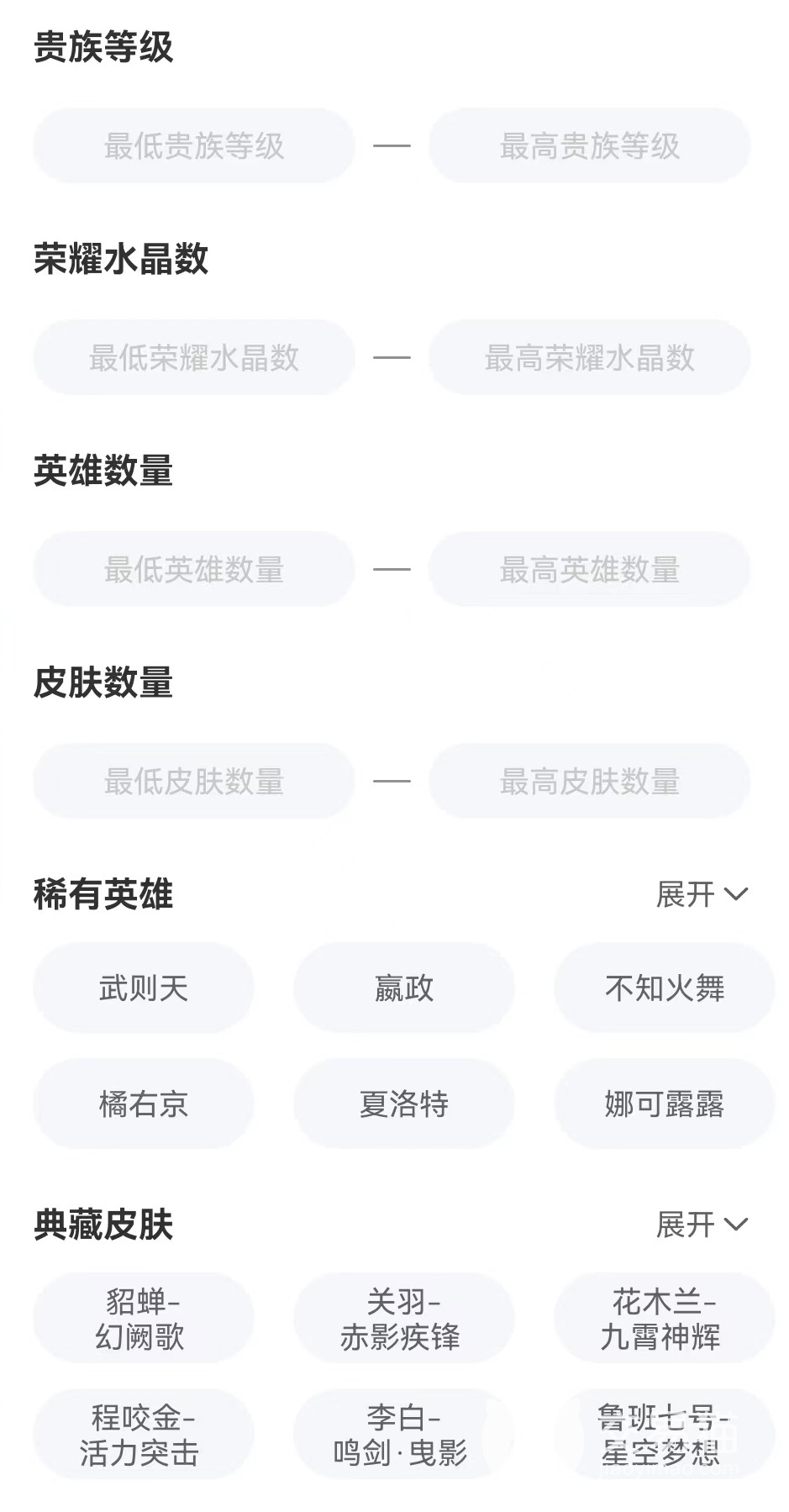 面对茫茫多商品千万不要担心找不到自己需要的内容,可以利用平台所提供详细筛选功能,将自己喜欢的皮肤全部点击选择出来,这样就能快速找到符合要求的那一些。其他也可以输入英雄数量,荣耀水晶数量等,都能帮助筛选出。再查看价格和其他方面,就能直接付款。
