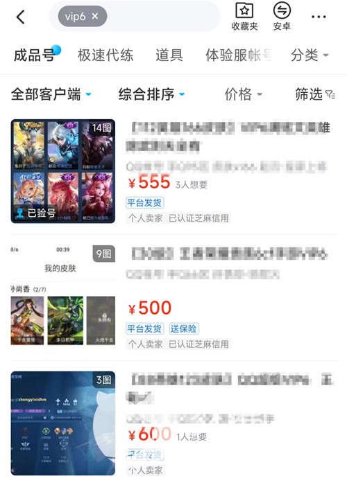 众所周知,王者荣耀这款游戏里的VIP是按照累计消费金额来区分的,而VIP6的消费金额是介于1000元到2000元之间,对于这种竞技类游戏来说已经算是氪金玩家了。往往这类账号都是边玩边氪,英雄数量和皮肤数量也都随着游戏时长而逐渐积累,但由于玩家已经享受了英雄、皮肤带来的快乐,所以在出售时大概率是不能收回成本。根据交易猫平台王者荣耀专区的订单来看,VIP6的账号价格大概能卖到500-600之间。当然,如果账号里有极品皮肤,那么账号的价值可能还会再高一些。
