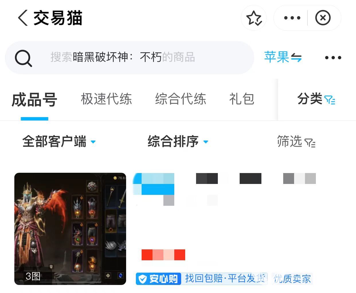 暗黑破坏神不朽中,玩家们创建一个游戏角色之后,需要通过刷怪和做任务来提升角色的等级,以及搭配各种装备,综合提升属性。很多玩的时间比较久的老玩家,普遍打到了400多级,感觉到了腻味;刚开始玩的玩家们,则需要从0开始,很难跟上节奏。在这样的契机下,账号交易可以帮助老玩家回血,新玩家则可以直接购买等级比较高的游戏账号。在交易猫中,即可进行账号交易。