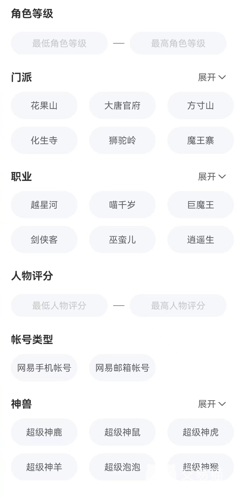 这种方式就是自己在所有出售成品号中寻找与自己账号最相似那一款,筛选提供了当前等级,门派,职业以及人物评分,是否具有超级神兽等。只要这些按照自己账号内容去筛选,寻找出来的就非常相似,参考一下对方定价,就能得出一个比较靠谱估价。通过查找我们可以看出价格区间跨度非常大,从百万到几十元不等,和里面道具关系非常密切,这就凸显了估价重要性。