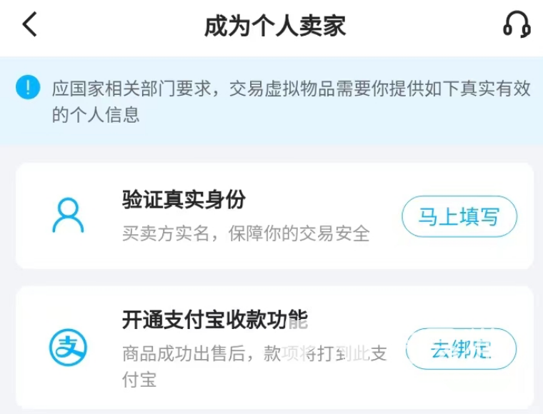 3、当然,如果玩家们到了游戏的后期,开始对各种玩法产生疲劳感的时候,也可以回过头来在交易猫当中去出售自己的游戏号。而针对卖家身份的开通,大家只需要简单通过平台的验证即可,同时依靠平台庞大的活跃用户群体,各位的账号也会很快的卖出去。