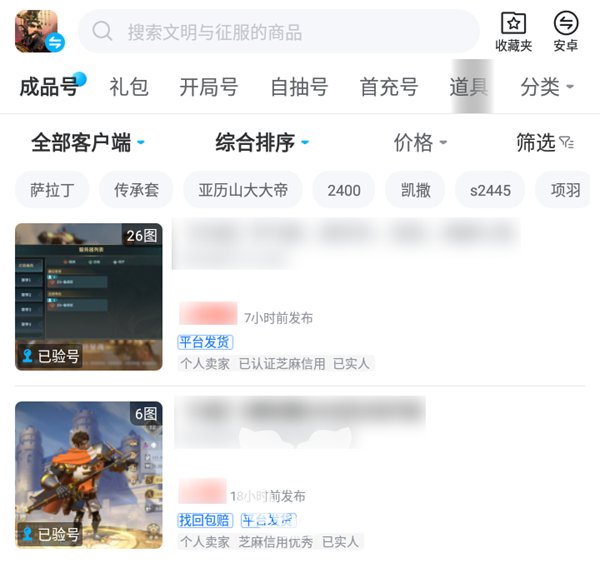 大家进入文明与征服的交易专区中能够看到平台为游戏商品进行了一些十分细致的分类,在这里不仅可以购买到账号,还能够直接购买一些可在游戏中兑换使用的礼包码或者是道具。针对不同玩家的需求以及想要体验的阶段,交易猫中也将账号细致分类成为了首充、自抽以及成品等类型。对于一般的玩家而言买成品号就可以了,如果想要完整获取游戏体验,又想要在前期获取丰富的资源和强大的战力,开局号就是不错的选择了。