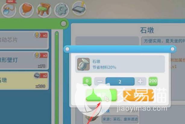 制作石墩我们也是需要提前准备材料的,石墩子用到的材料肯定就是石头了,玩家们可以在野外获取,使用锄头就可以获取很多的石头,然后放在背包内备用,获取到足够多的石头之后玩家们就可以直接制作了,点击确认,最好是批量制作,制作的越多,我们所需要的材料就越少。