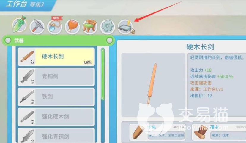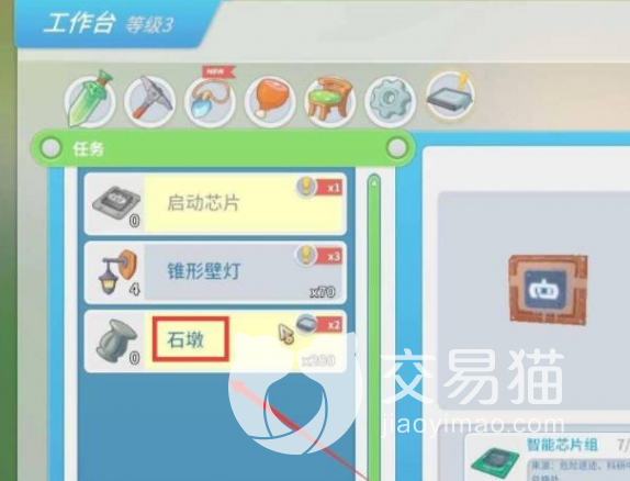 石墩是需要在制作台制作的,我们将制作台提升到三级之后才拥有石墩的制作界面,玩家们点进制作台的任务图标,在这里我们可以直接看到石墩,点击选中。