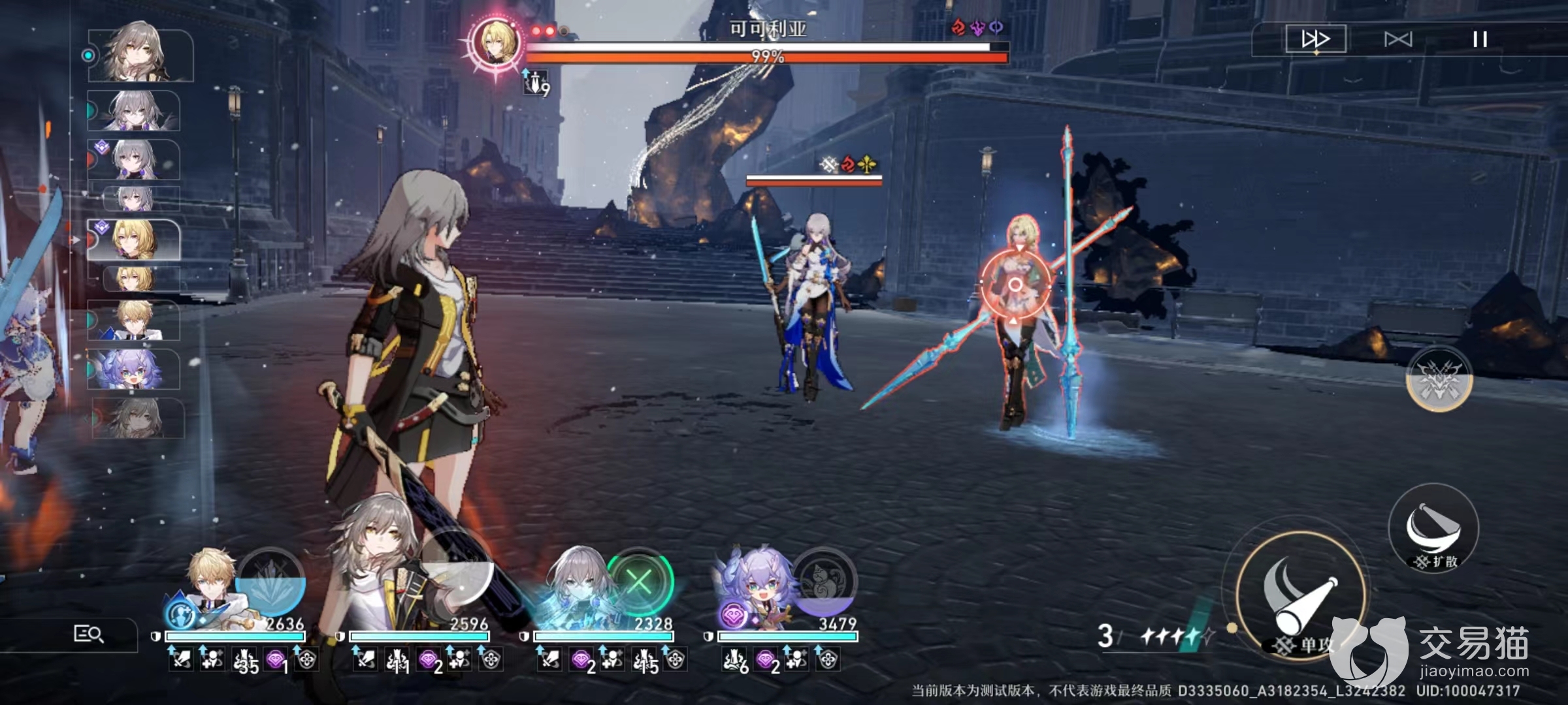 首先来看一下该boss的最基本情况,它具有火、雷、量子三个弱点,所以在选择角色上比较广泛,不需要强度太高类型,小编这次采用的是虎克和阿兰作为输出主力,辅助方面由娜塔莎加血保证续航,三月七利用自身护盾保护住血量比较低的目标,为娜塔莎的治疗提供机会和空间。因为虎克和阿兰在养成方面难度比较低,这也是小编认为可可利亚其实难度并不大的原因所在。
