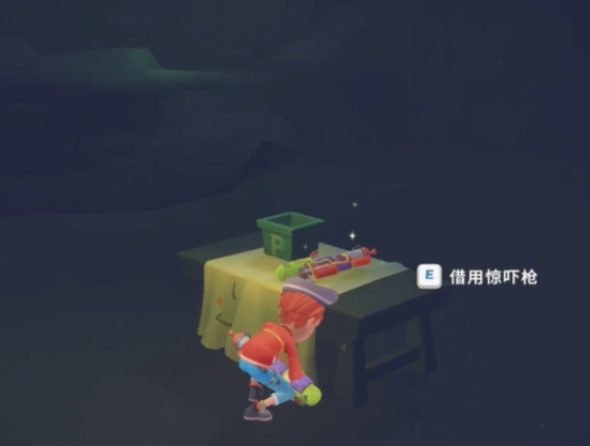 玩家进入到山洞之后可以看到山洞的内景非常黑,几乎没有什么亮光,恐怖气氛在此时被渲染的更加强烈了,但是玩家在进入之后一定不要错过面前出现的桌子,因为这个桌子有我们在后面闯关的武器,拿上武器就可以一直向着左边前进了。