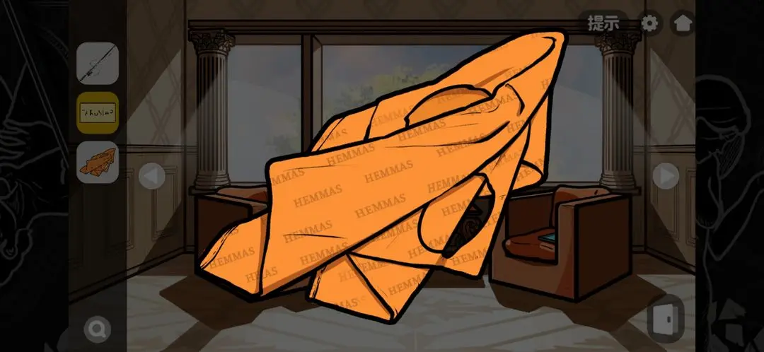进来之后可以点击人形雕塑上的衣服,从中能够获取到一张字母卡,然后在将敌方的鱼竿拿走,随后点击碎纸篓将对应的纸张拼接起来就可以完成拼图了。随后可以去往右边的休息区,那里的桌子上可以获取到一张桌布,然后各位将刚获取到的字母卡与桌上的那个放一起,就可以得到一串完成的字母。