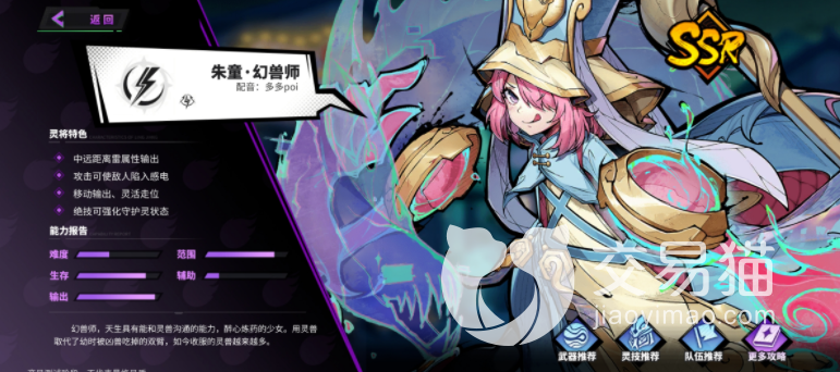 朱童幻兽师是雷队主要输出角色,配备好专武之后直接实现质的飞跃,本来就是爆炸输出,直接可以提升到释放绝技一次就能触发感电伤害,属于游戏中顶级爆发伤害。范围伤害技能使得这位角色是绝佳的副本输出,电一下死一片,有就培养就好了。