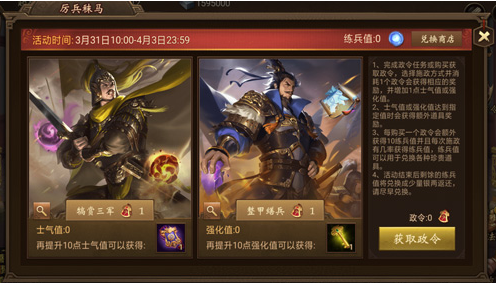如果新手小伙伴们不知道应该培养什么英雄,平常可以在商店蹲一些特价英雄,最低可达到一折起,只需要用银币进行购买,价格贵一点的就不建议了。我们也可以来到武魂商店中,更快的培养自己的英雄,并熟悉围猎碎片,这也是之后的一个重要玩法。切记武道商店中的押注不要一次赌太多,需要备下一部分为为英雄购买稀有技能,增强军略,策谋等等属性值加成。擂台商店中小编建议大家优先换取招魂符,可以在对战过程中恢复自己的兵力值。