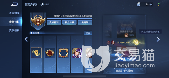 手上有贵7账号且想出手,困扰于不知道以什么样的价格来售卖比较合理的小伙伴们,可以去交易猫看看,给自己的账号估价再出售,这样就能轻松弄懂王者荣耀贵7的号值多少钱的问题。