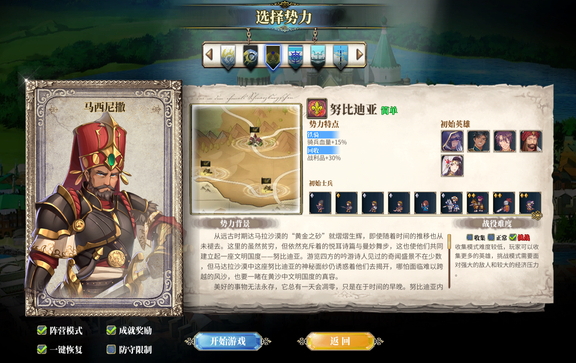 排在第二的是努比迪亚,这个势力是一个很后期的势力,我们在前期加入这个势力之后,会感觉平平无奇,没有什么特别的地方,但是随着时间和发展,会渐渐发现自己的国家实力越来越强盛,而这个势力最有利的地方就在他的地理位置,它的南方是没有国家存在,那我们就能放心的往那边去扩张,北方则是没有什么强大的国家,那我们在游戏的时候,只需要将东西两个方向的防线布置好,就不用担心太多,在我们全面扩张占领这个势力之后,我们的实力就会变得非常强了。