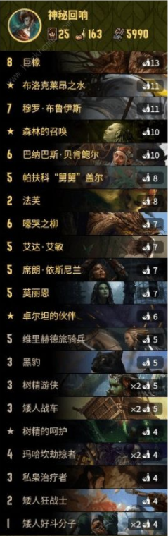 本套卡组搭配主打一个和谐,神秘,回响。整个思路都是围绕和谐来的,所以对局的时候要主动触发和谐效果。对局中,在法芙,布洛克莱昂之水,还有森林的召唤当中选取两张,一直存在手里,然后弄到矮人组件,这样可以利用矮人解决掉对手的卡牌,并且最终靠着触发和谐效果,得到很多点数,就可以赢下比赛了。