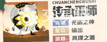 首先要给大家介绍的传承巫师,他的先祖是光明之神,定位是一个输出角色,武器为真理之源,他是部落之中最有名的智者,掌握着非常多的知识,能力上他的能力也和知识挂钩,他会不断的累计知识从而加强自己的攻击能力,知识累计越高伤害就越高,在实际战斗中,只要场上存在其他传承巫师那他就可以吃到这些角色的知识属性加成,从而让自己变的更强,相反如果实战中没有其他传承巫师,那他则吃不到加成,在无加成的状态下,他的战斗力是比较一般的。
