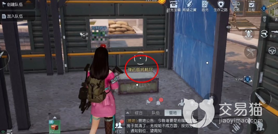 第三处,也是在这附近,广场右侧,接着上一个点往右边走,坐标约(2450,-4333),在一堆水泥袋子上有一个医疗箱,打开可以得到急救包、探索积分等等。