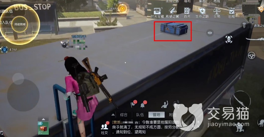 第一处,坐标(2300,4286),在一处大货车上,通过伸缩梯爬上去便可以看到在车顶的蓝色工具箱,打开可以获得一些胶水材料、银币,还有探索积分。有一说一这个箱子位置藏得还真够隐蔽的。