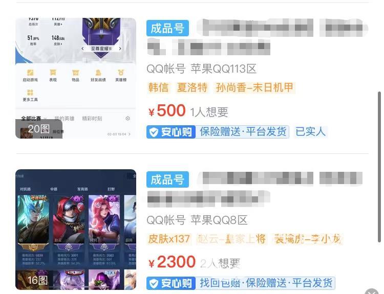除了上述的一个功能外, 大家也可以上平台的王者荣耀专区,查看上架的商品,其中不乏贵七的出售账号,大家可以多看几个,多对比一下,看别人为什么卖这么贵,为什么又会这么便宜,肯定与其中的皮肤内容息息相关,看多了以后自己的账号大致肯定能与市场价贴近的价格了。小编也是特意去搜索了一下贵七的商品列表,一般的成品号都是在四五百这个价位,其中段位高的皮肤稀有的就四位数往上了,所以大家看看自己的号值多少呢?