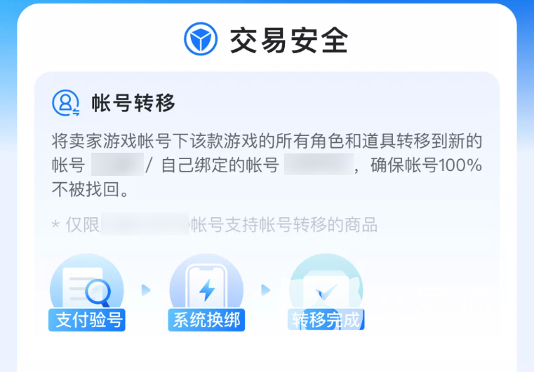 账号跟物品的转移是交易猫最为有特色的功能了。账号的转移就很容易理解啦,就是需要客服的辅助从而将原来账号里边的所有信息包括角色呀,道具啊,皮肤等一次性全部转到下单的买家账户里边,这种方式也会让购买到的内容更加的安全,不过这个转移是单方面的,换句话说就是一旦转移了就回不去了,所以大家下单钱一定将每一项都仔细阅读才好呀。