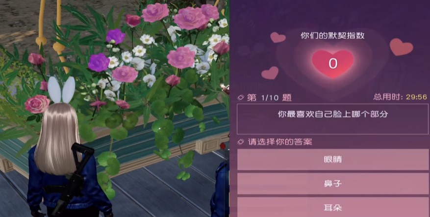 还有一个关于同居树的答题挑战,比较考验大家的默契,这个其实没什么难度,没有准确答案,只要双方选择同一项就可以了,算是培养默契吧!可以开着麦克风来答题。