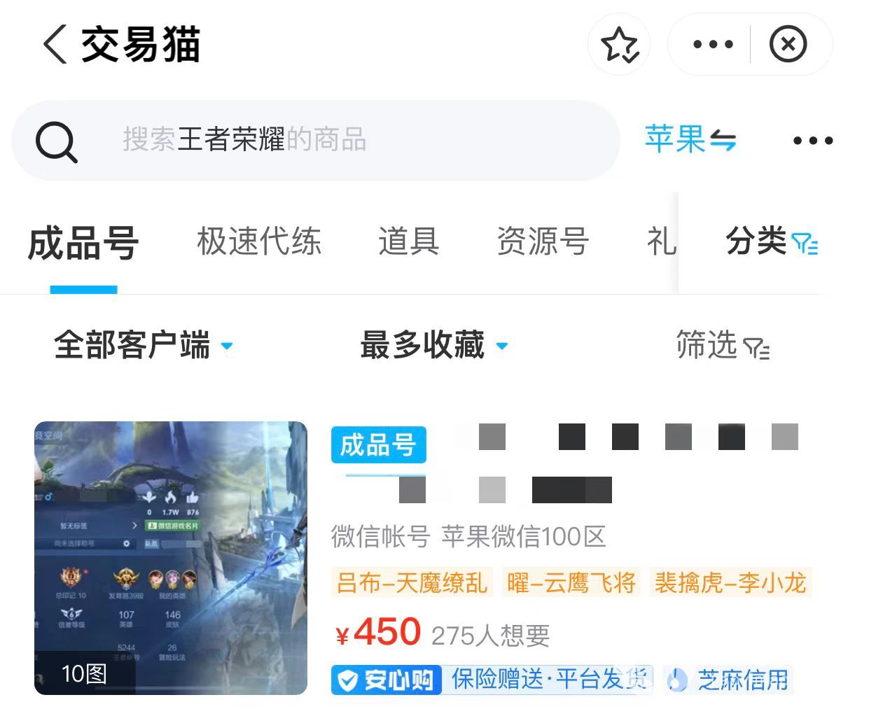 三:成交速度快:交易猫平台拥有的注册用户相当多,日活高,有很多玩家都来到交易猫进行账号交易,因此,在玩家们以一个合理的市场价挂出自己账号的前提下,成功交易的速度会比较快。玩家们也可以去查看待售的状态,商品页面显示“想要”的人数,都是非常多的,说明的确有很多玩家都正在逛交易猫,也许下一个成交的就是自己。