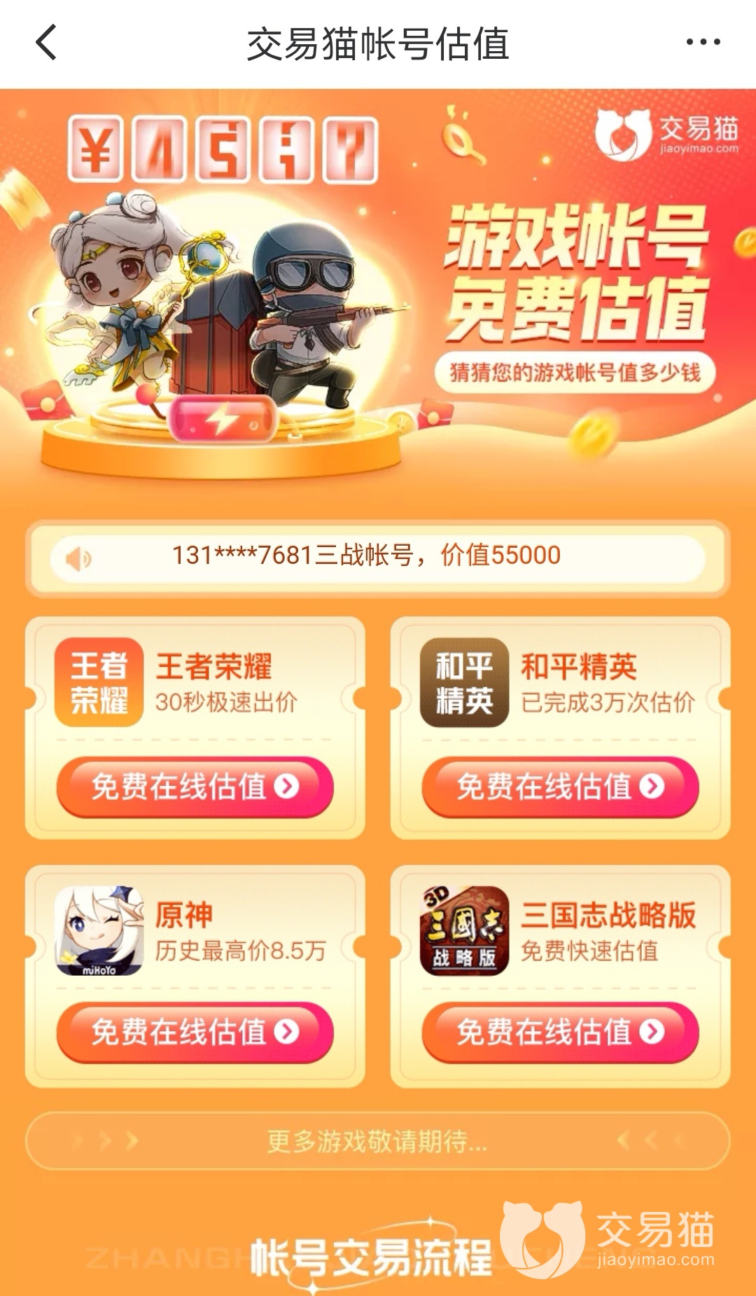 提到交易猫大家可能都知道在江湖上有他的传说,而且交易猫的活跃用户非常多,算作是国内比较早一批的账号交易平台了,所以他已经有非常丰富的经验和较为完备的系统,因为活跃用户多,所以每天能够在交易猫完成的成交率和出售率也很高,接下来就让小编带着小伙伴们来认识交易猫。
