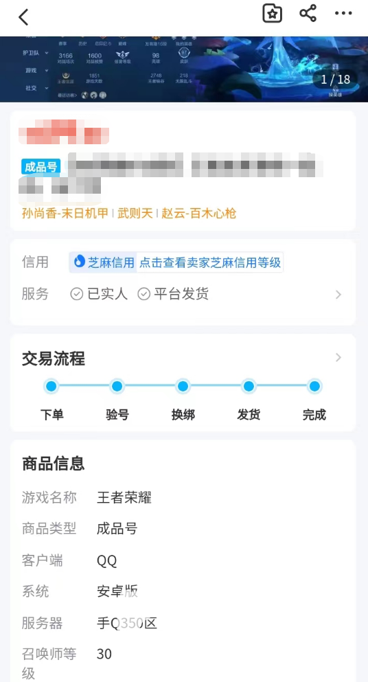 而在挑选商品的过程里,玩家又需要认真的查看账号内的所有内容,一般来说卖家都会把游戏内包含的英雄数量等信息进行展示,玩家需要通过这些信息来判断是否符合自己的预期。同时,针对不同商品的交易流程也会在大家买号的过程当中,有效的维护好买家的利益。