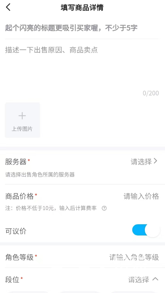不过呢,针对账号出售这一方面来说,大家在发布商品的过程里,需要认真填写整个游戏账号的描述内容,尤其是针对亮点武器和特殊道具进行描写,会吸引到更多有意向的买家前来咨询。当然,关于排位赛的段位也非常重要,必填项各位都需要按照真实的账号内容进行选择。