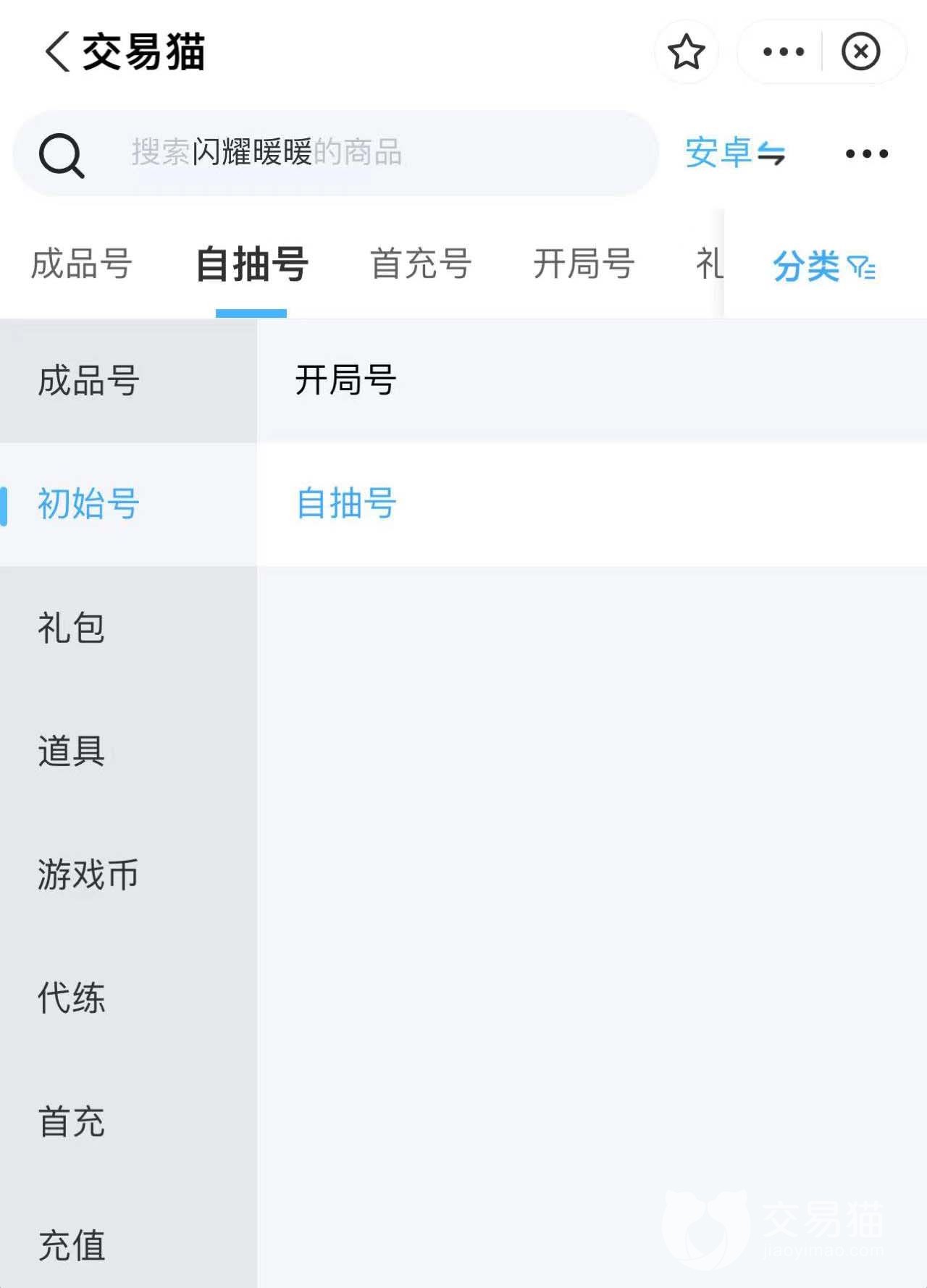 有不少朋友想要从头开始玩闪耀暖暖,但是没有道具或者服装的话,玩起来就会很费劲。其实在交易猫里你可以选择初始号,接着就会出现两种类型的账号可供你去挑选。一种是自抽的账号,另外一种则是开局号。都可以让你在一开始的时候便拥有各式刀具,随心地挑选自己心爱的服装,接着在接下来的游戏里,才能凭借着各式服装一路过五关斩六将,成为最美的存在。