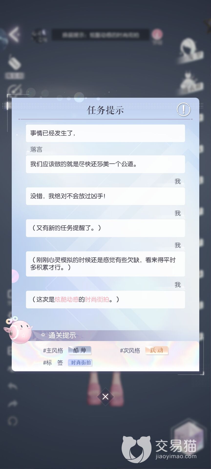 进入到关卡以后,我们可以看到与普通模式一样,会有一个任务提示,而且还会有多一个“最高分”的标志,这个选择了以后,系统会自动的帮我们搭配出在普通关卡内的最高分数,我们可以先选择这个,然后再按标签搜索,来查看自己有没有更加高分的服饰等。