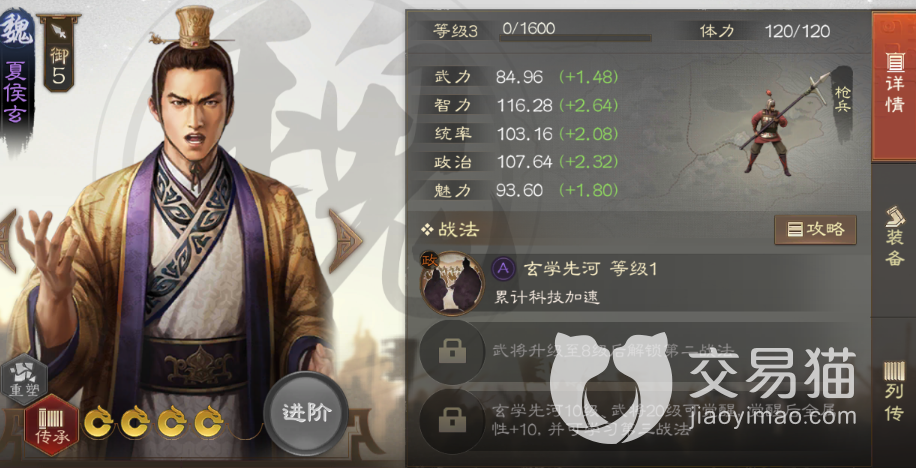 从该武将的各项数据来看的话,是一个成长性非常高的武将,适用的范围非常管,其智力还有统率的成长速度都非常的快,武力值也比一半以上的四星武将要高得多,因此该武将的定位完完全全不需要仅限于内政了,可以之间转型前排输出、前排护盾或者是前排辅助,他的实力是完全不需要之一的,相对于其他相同的能够转型的武将来说的话,该武将的转型的范围会更广,更加的适合武将缺少的玩家来使用,自带战法是用来提升科技速度的,该战法对于该武将的作用其实并不大,内政型的武将很多,科技加速的也不少,直接考虑转型就可以了。