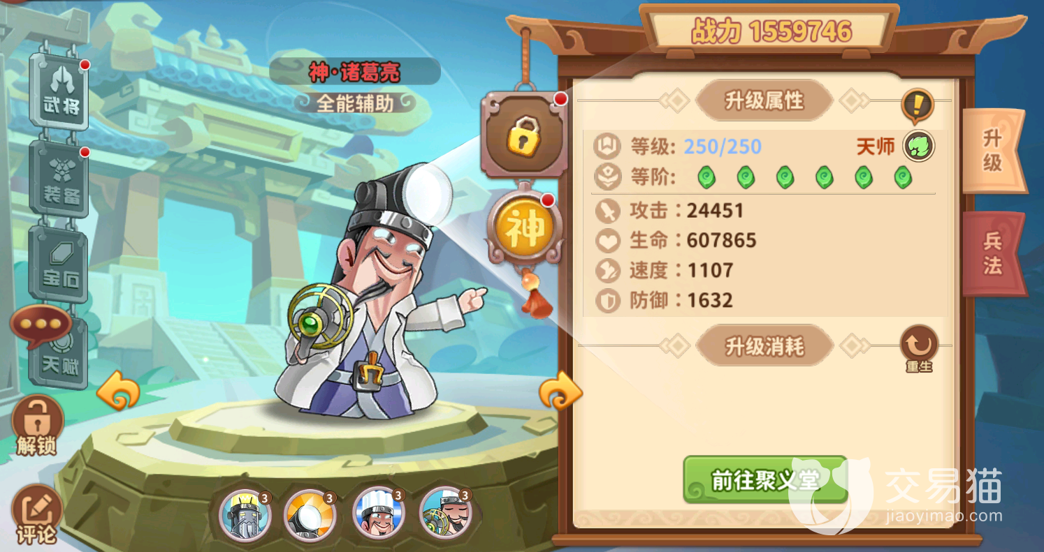 诸葛亮是走一个文臣的路子,所以在游戏中也是智力超群的,他的三个被动要么是提升自己攻击的,要么就是恢复自己攻击那么多的等量生命,怒气技能在游戏中是一个召唤技能,对对面造成伤害的同时可以恢复己方的队友攻击等量生命值。
